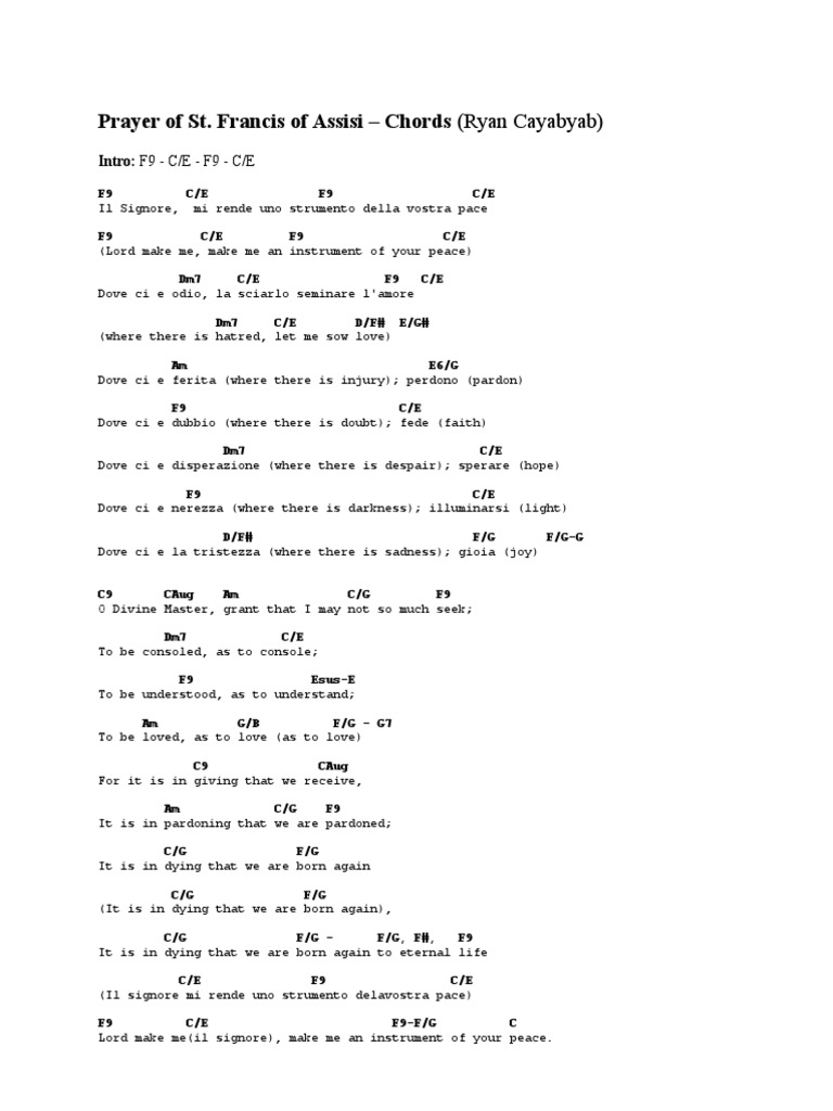 Prayer Of St Francis Chords Pdf Christian Worship And Liturgy Francis Of Assisi