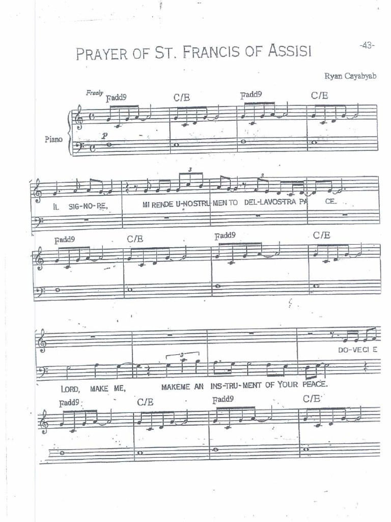 Prayer Of St Francis Of Assisi Ryan Cayabyab Sheet Music For Piano Church Choir Musescore Com